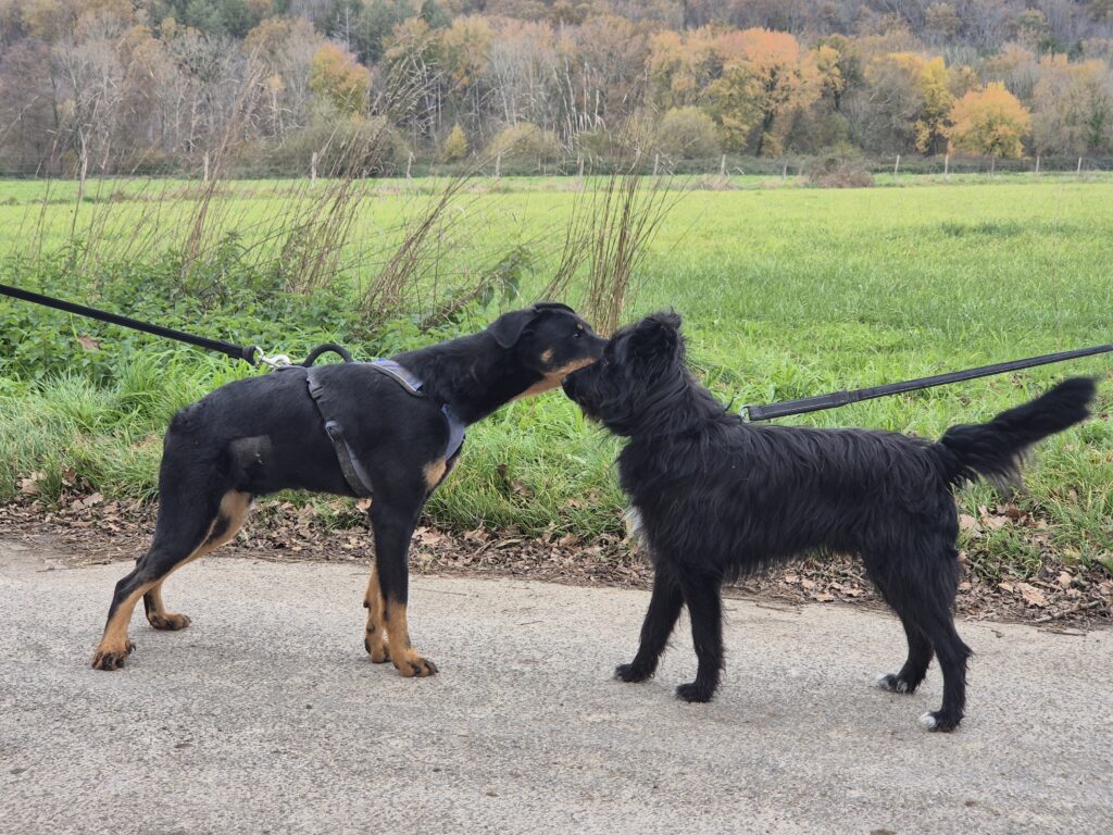 Arkos est un grand chiot qui possède quelques bases d’éducation mais il a encore tout un tas de choses à apprendre. Bien que vif et très joueur, il ne tire pas sur sa laisse lors des balades en extérieur. Hyper affectueux, il ne dit jamais non à un câlin.