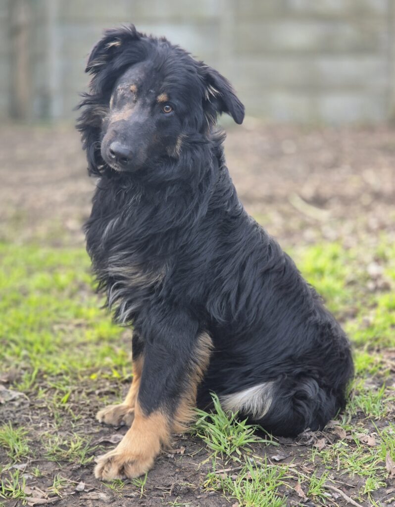Femelle – Stérilisée – Née en Mars 2024 – Type Beauceron – Taille Moyenne à Grande – Identifiée par puce électronique