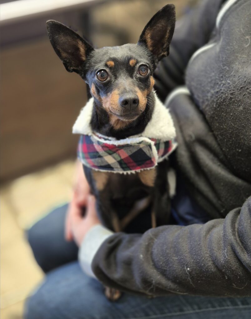 Femelle – Stérilisée – Née en Janvier 2018 – Type Pinscher Nain – Taille Moyenne – Identifiée par puce électronique