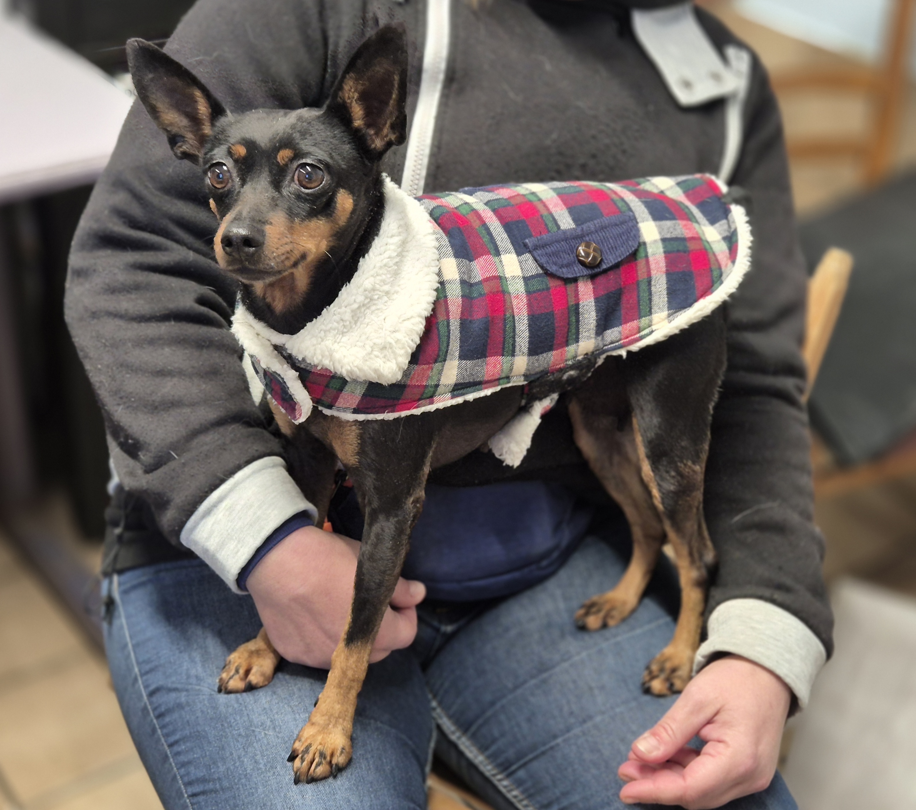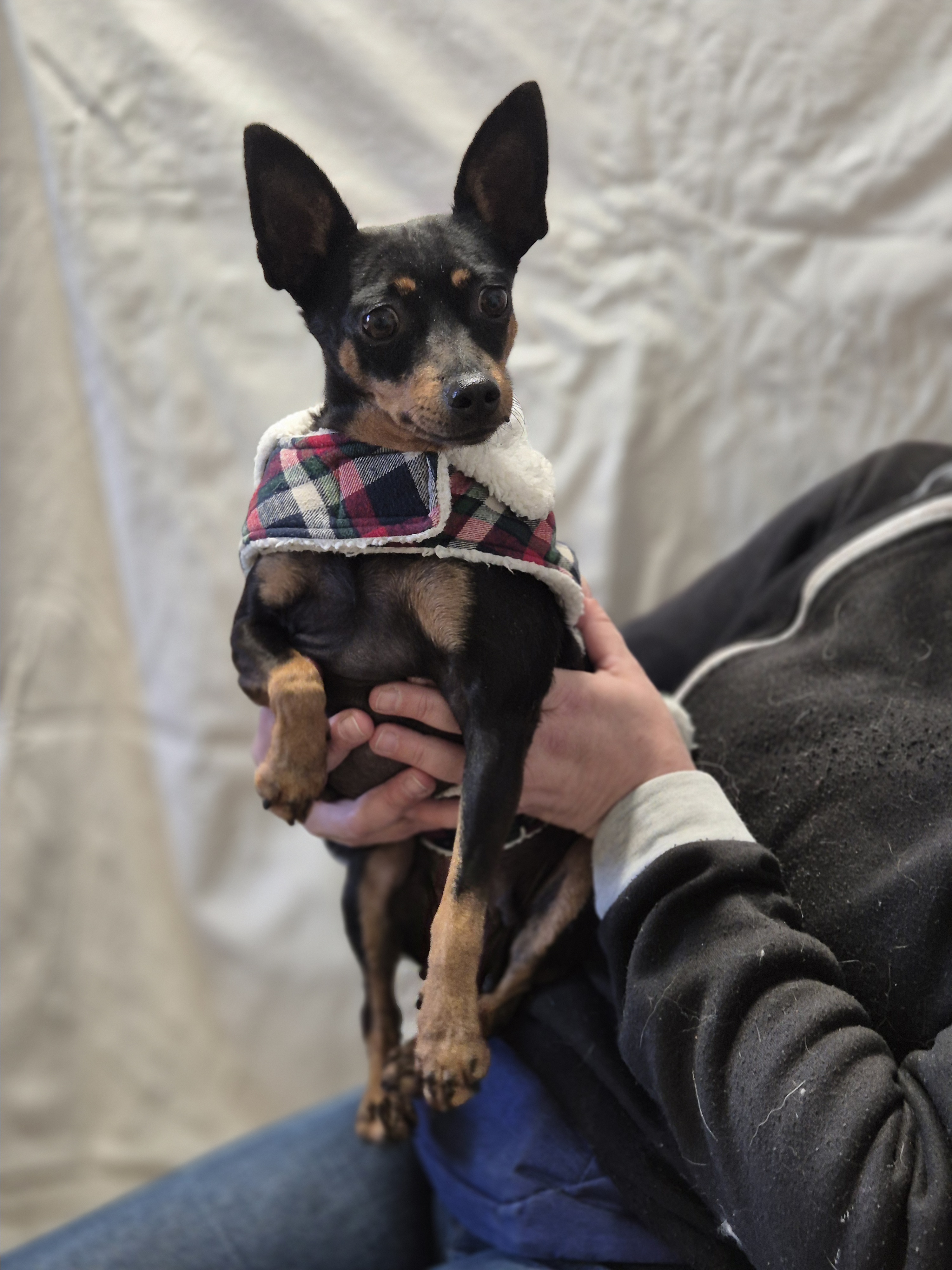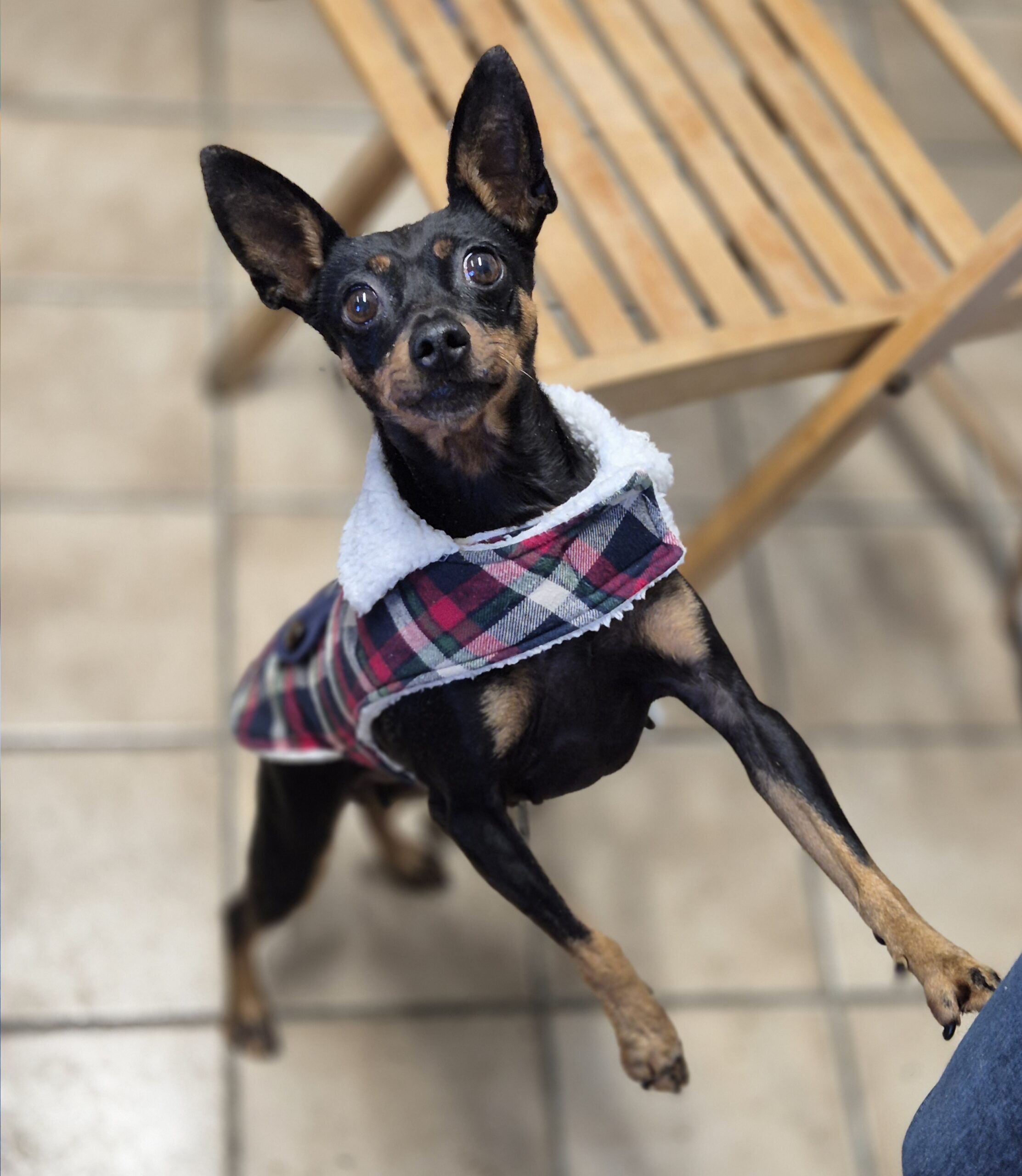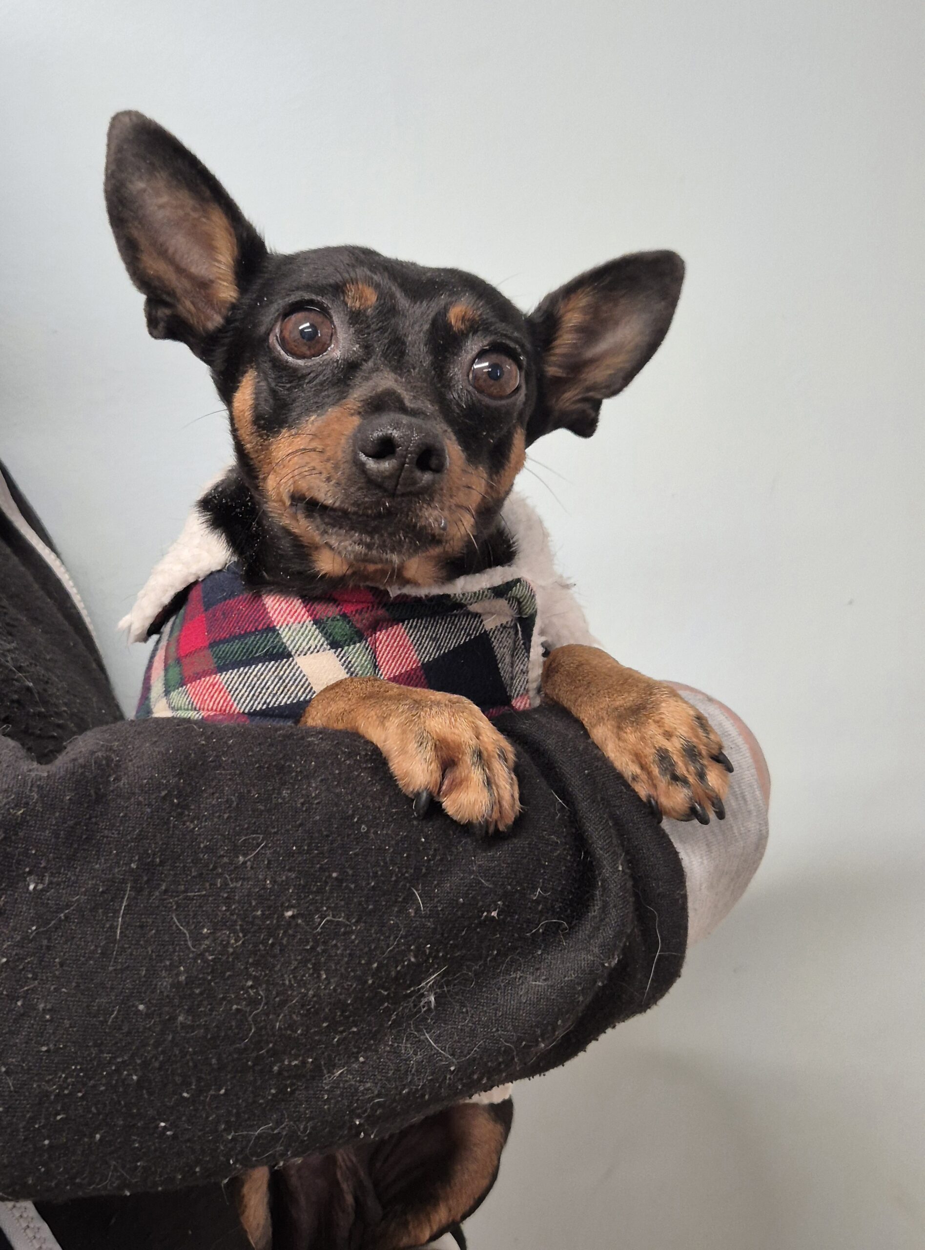Femelle – Stérilisée – Née en Janvier 2018 – Type Pinscher Nain – Taille Moyenne – Identifiée par puce électronique
