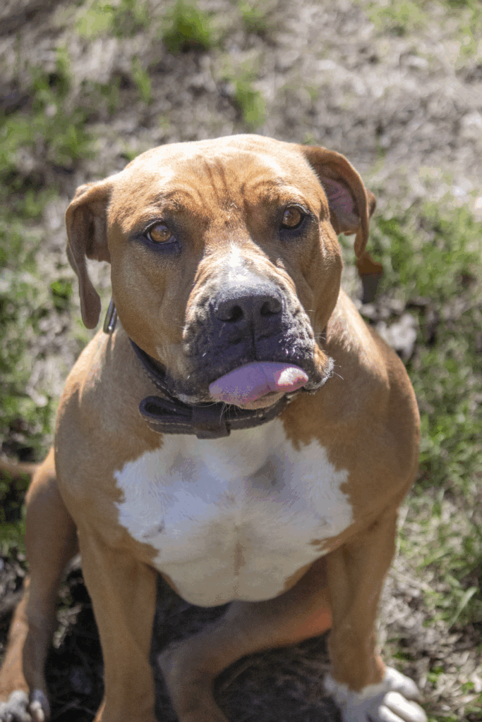 Femelle – Stérilisée – Née en Juin 2022 – Type American Bully – Taille Moyenne – Identifiée par puce électronique
