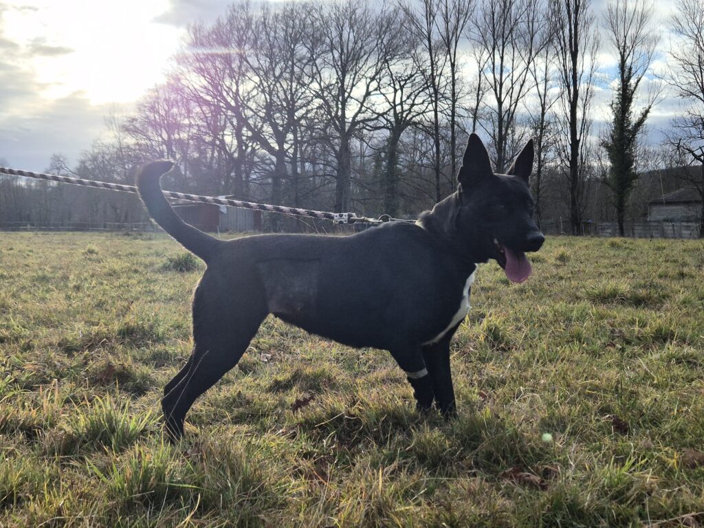 Femelle - sera stérilisée avant son départ - Née en Mai 2025 - Type Border Collie/Berger Australien - Taille Moyenne - Identifiée par puce électronique